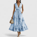 Athena Elegant Floral Dress in Blue and White is the perfect choice for turning heads at weddings, races, and other special occasions across Ireland. Designed with a delicate pleated texture and a flattering V-neck, it offers graceful elegance and all-day comfort from morning to evening.