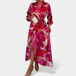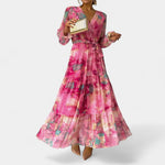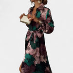 Meet the Elpina Long Ruched Floral Print Dress With Long Sleeves, your go-to piece for timeless elegance with a modern twist.