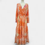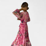 Elpina Long Ruched Floral Print Dress With Long Sleeves