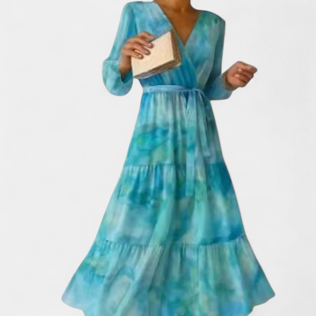 Designed for spring and summer days in Ireland, it flatters with a ruched waist and airy long sleeves that keep you comfortable from daytime strolls to evening affairs.