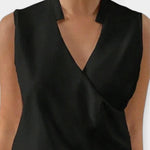 Meet the Sleeveless Solid Top With Cross V Neck For Everyday Style—the lightweight, elegant piece you'll reach for daily.