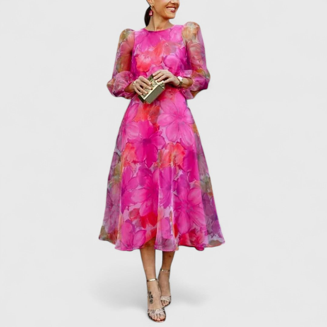 Ariadne Floral Print Wedding Guest Dress Pink And Blue lets you shine at weddings with timeless elegance and all-day comfort.