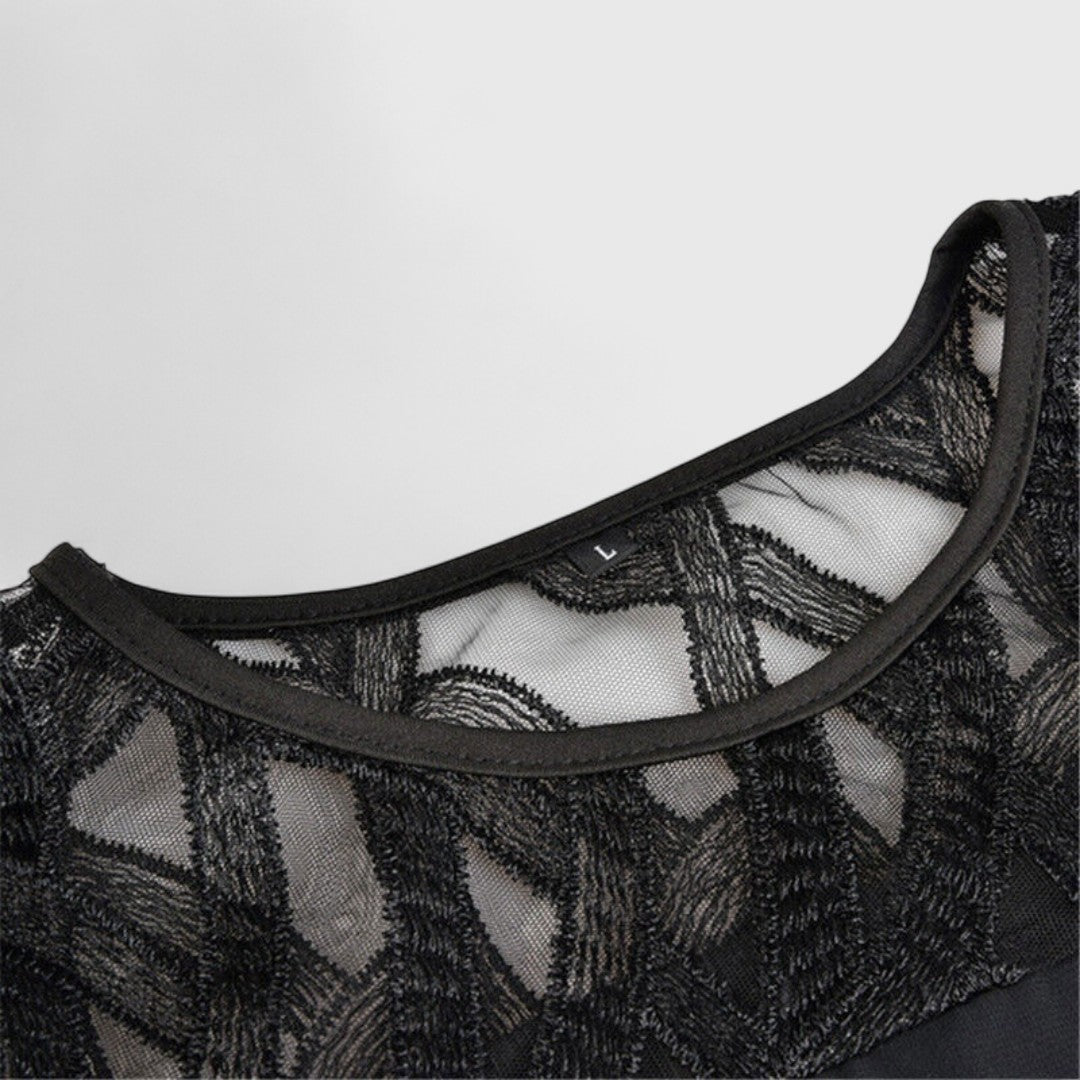 - Classic round neckline with luxurious lace detailing on the sleeves.