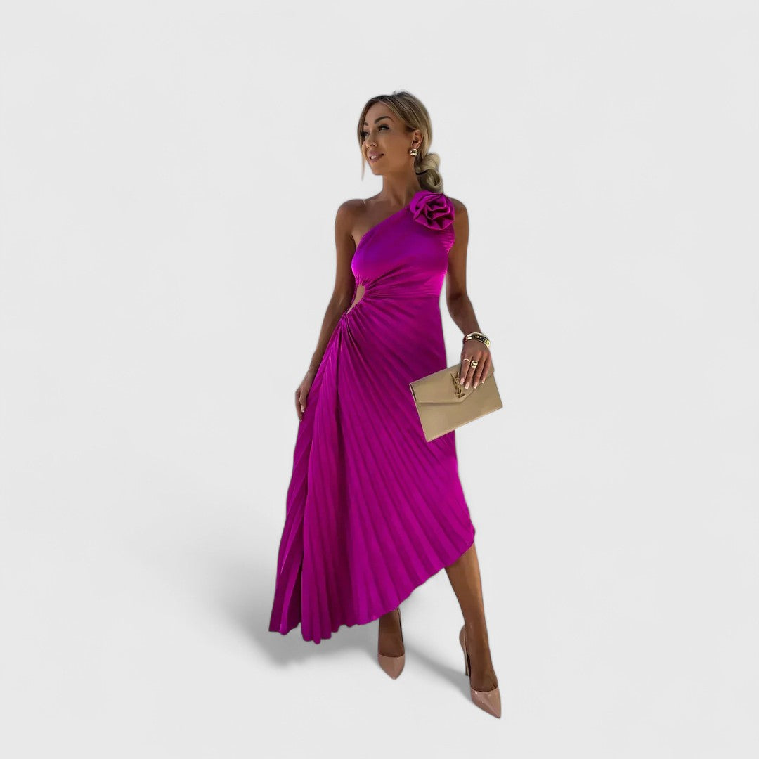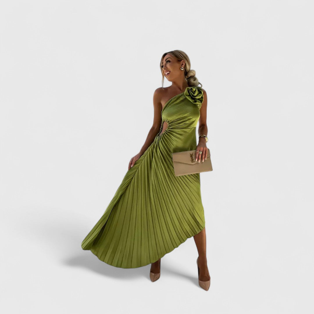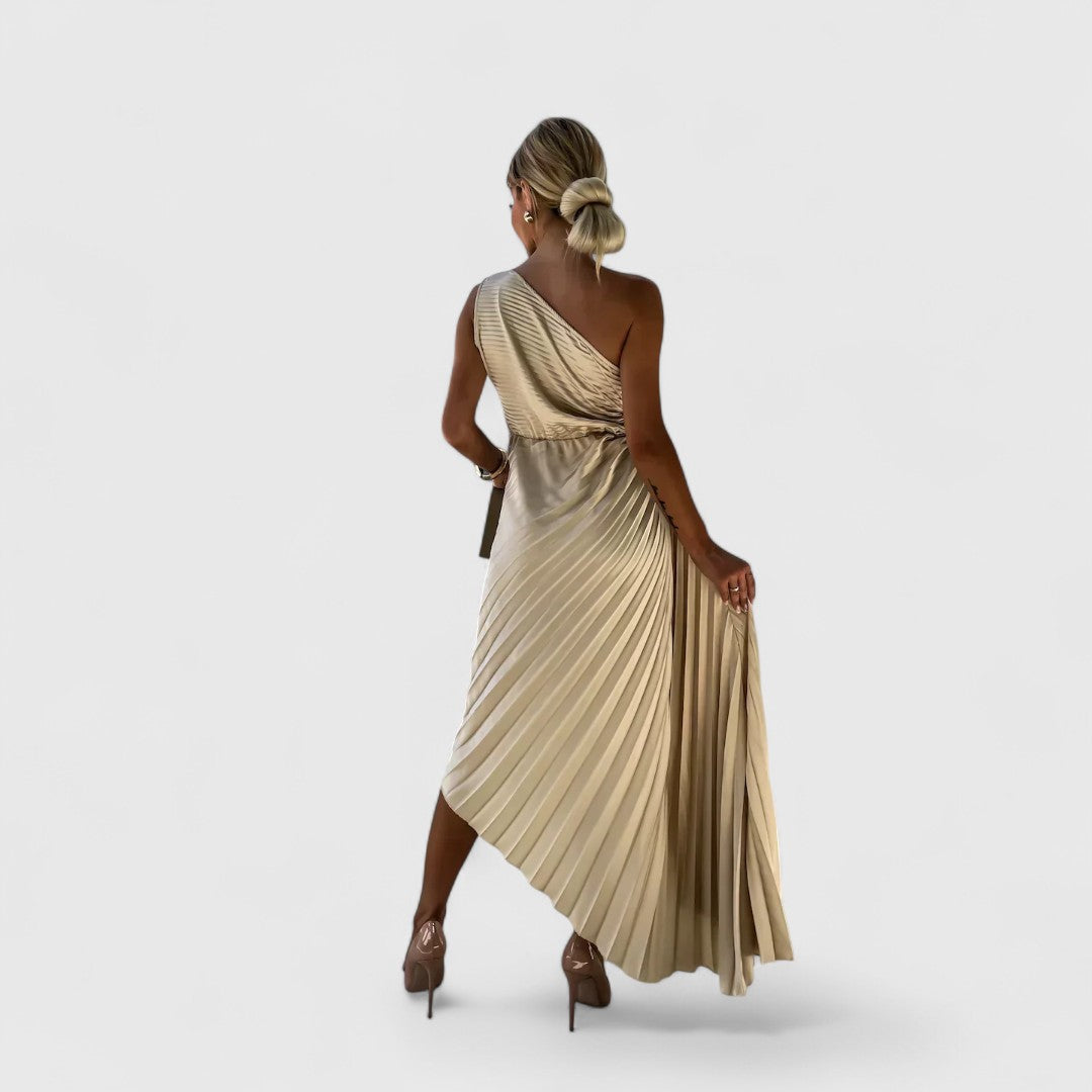 Lida Pleated Shoulders Elegant Dress For Discreet Grace