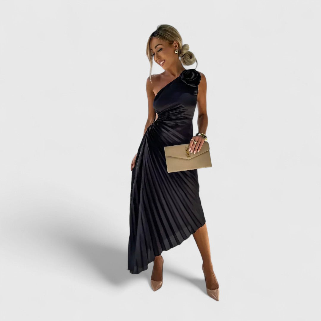 - One-shoulder silhouette creates a clean, contemporary line that elegantly flatters the figure, offering timeless polish for any occasion.