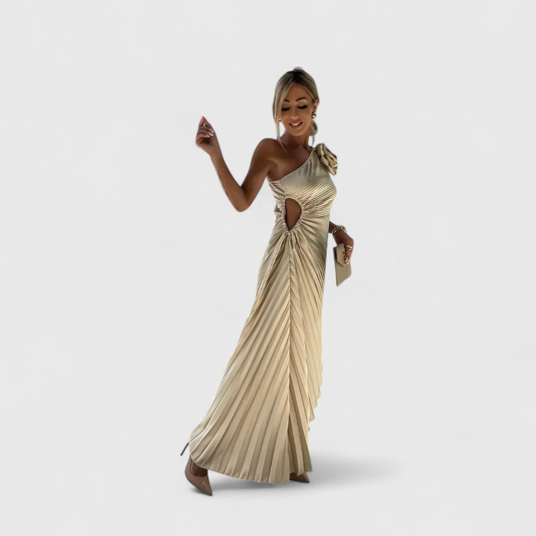 - Delicate pleats at the shoulders add texture and graceful movement, catching the light as you move.