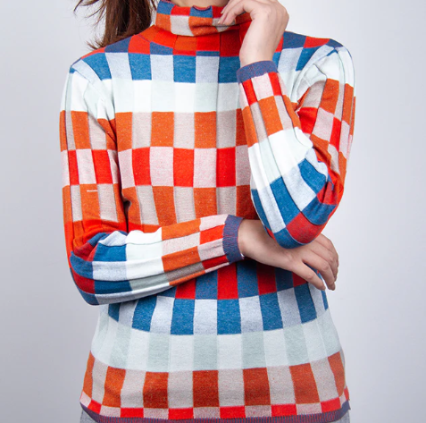 Erika Patchwork Rollneck Jumper For Cold Days Warmth