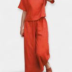 Airy Short Sleeve Top And Trousers Set For Summer Casual