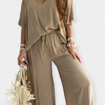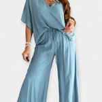 Airy Wide Leg Trousers Set With Flowy Blouse Relaxed Fit