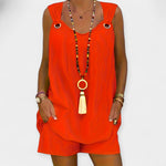 Introducing the Sleeveless Blouse And Shorts Set V Neckline Style Chic—the perfect summer wardrobe duo for a polished, breeze-friendly everyday look.