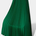 Designed to flatter the silhouette, its high-waist cut and wide A-line create a timeless, flattering shape while the soft pleats glide with every step.