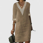 Meet the Hera Linen Everyday Dress With Delicate Lace Detail, your go-to piece for breathable comfort and timeless style in daily wear.