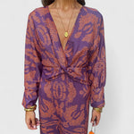 Midi Dress Front Twist Deep V Neck Long Sleeves Paisley