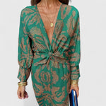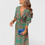 Meet the Midi Dress Front Twist Deep V Neck Long Sleeves Paisley—the epitome of timeless elegance and versatile styling for every Irish occasion.