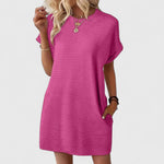 Pantelia Minimalist Dress Round Neckline offers effortless elegance for warm-weather days.